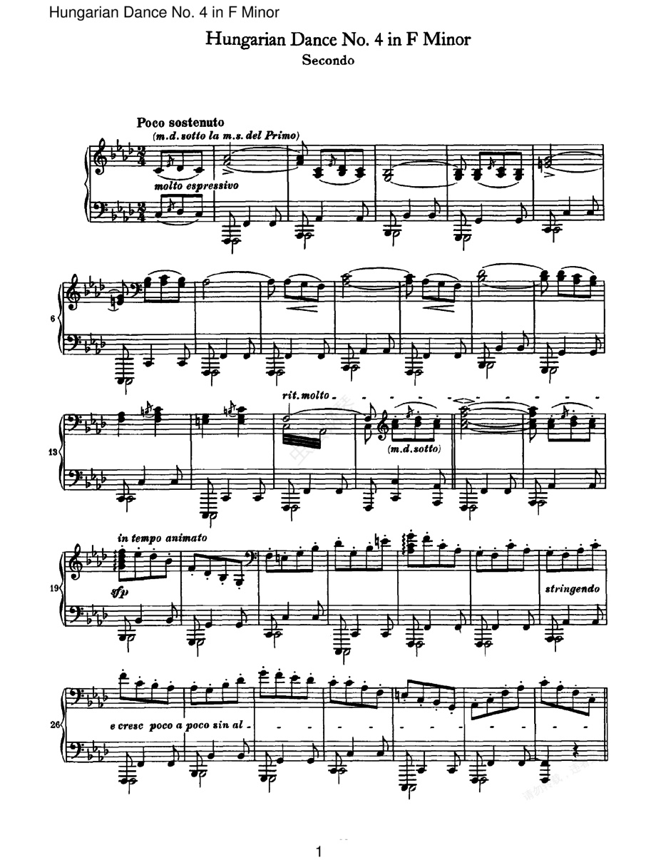 21首匈牙利舞曲 21 Hungarian Dances四手联弹(Brahms Hungarian Dance 04 in f (duet))