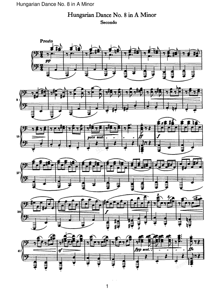 21首匈牙利舞曲 21 Hungarian Dances四手联弹(Brahms Hungarian Dance 08 in a (duet))
