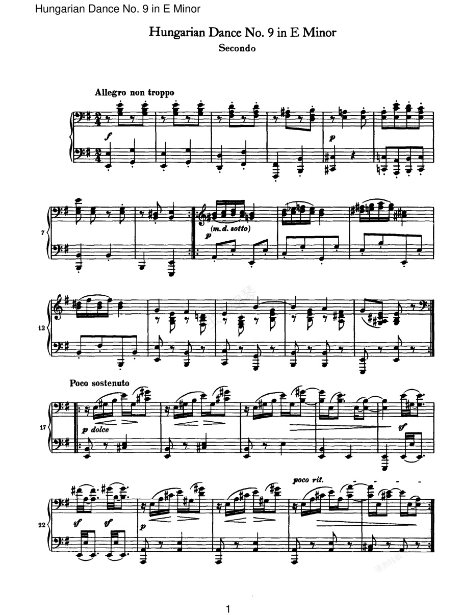 21首匈牙利舞曲 21 Hungarian Dances四手联弹(Brahms Hungarian Dance 09 in e (duet))