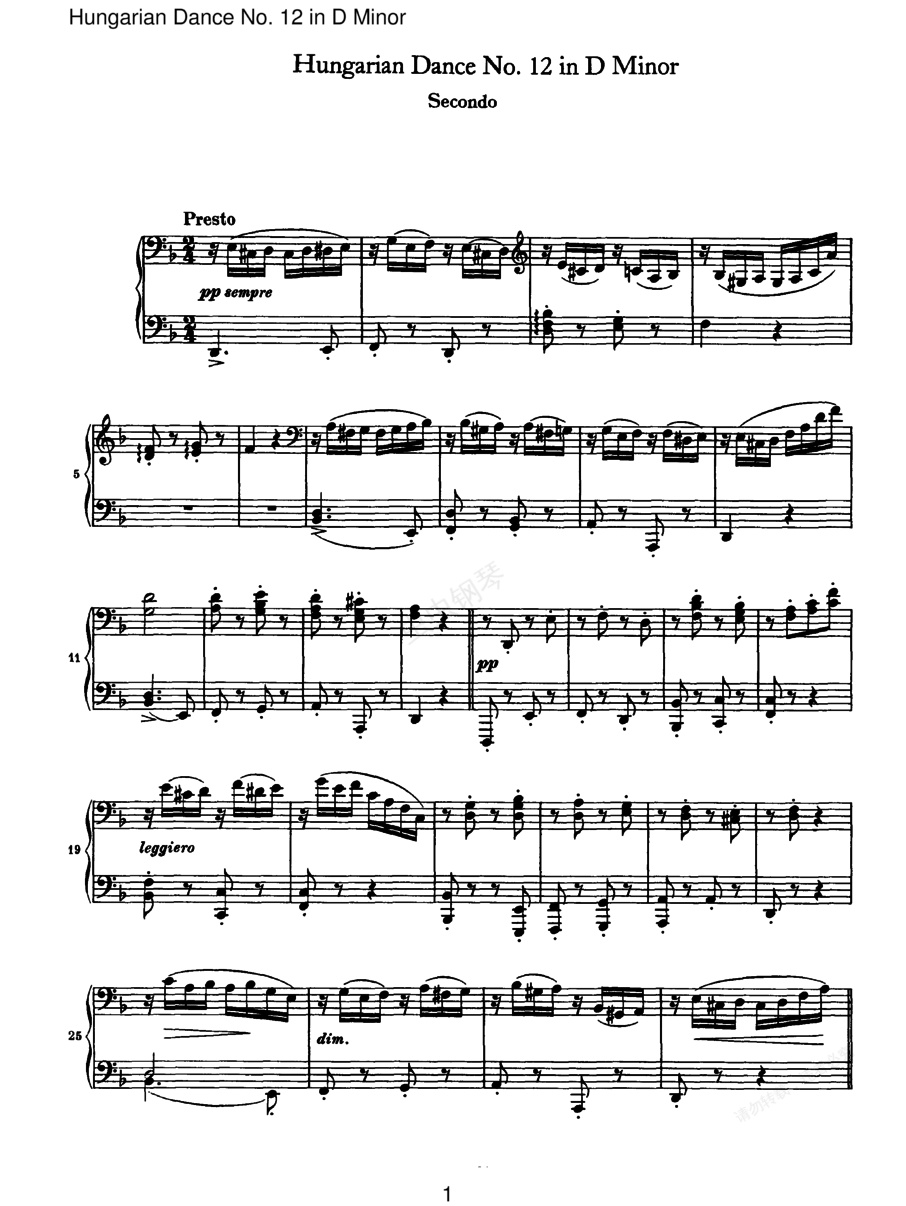 21首匈牙利舞曲 21 Hungarian Dances四手联弹(Brahms Hungarian Dance 12 in d (duet))