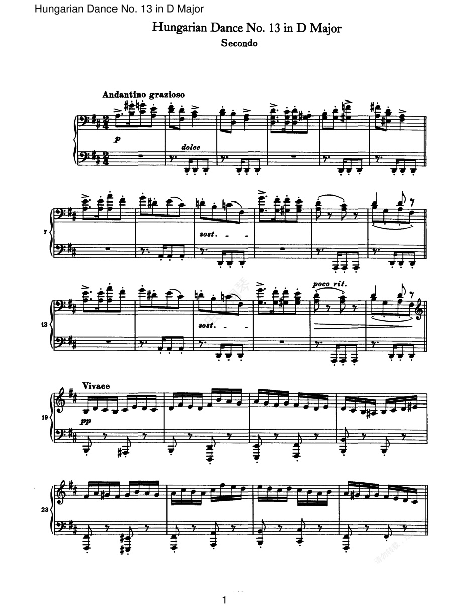 21首匈牙利舞曲 21 Hungarian Dances四手联弹(Brahms Hungarian Dance 13 in D (duet))