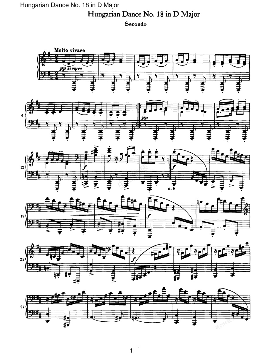21首匈牙利舞曲 21 Hungarian Dances四手联弹(Brahms Hungarian Dance 18 in D (duet))