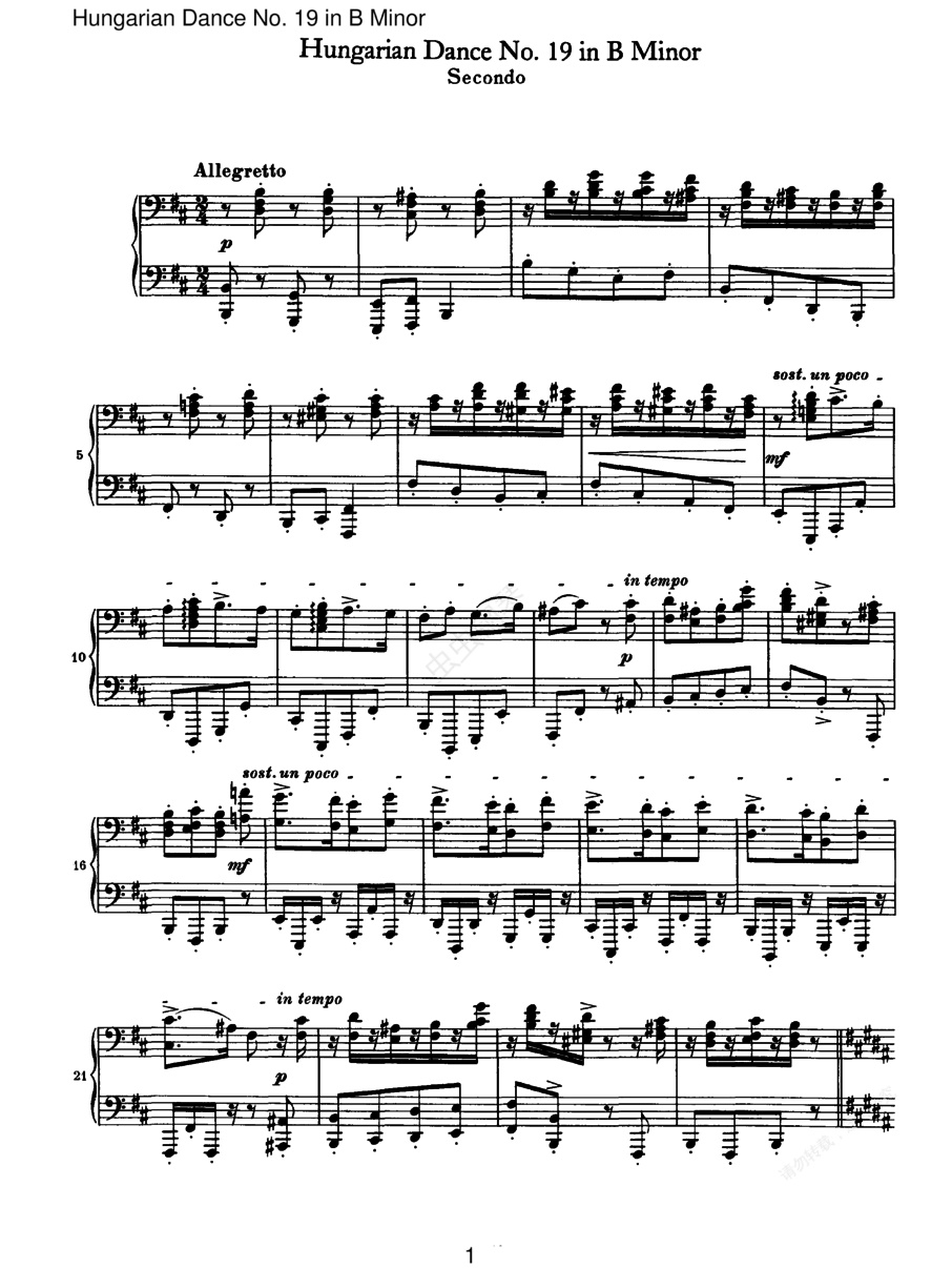 21首匈牙利舞曲 21 Hungarian Dances四手联弹(Brahms Hungarian Dance 19 in b (duet))