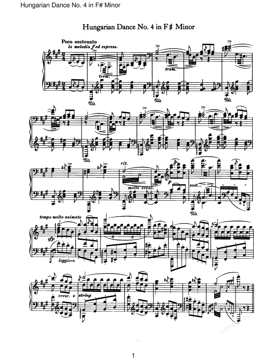 钢琴谱:10首匈牙利舞曲 独奏版(Brahms Hungarian Dance #04 in f# (solo))