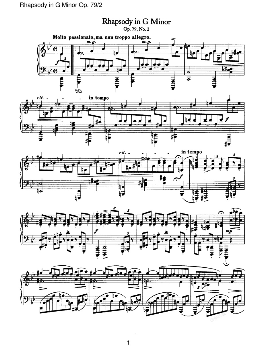 两首狂想曲 2 Rhapsodies Op.79(Brahms op079n2 Rhapsody in g)