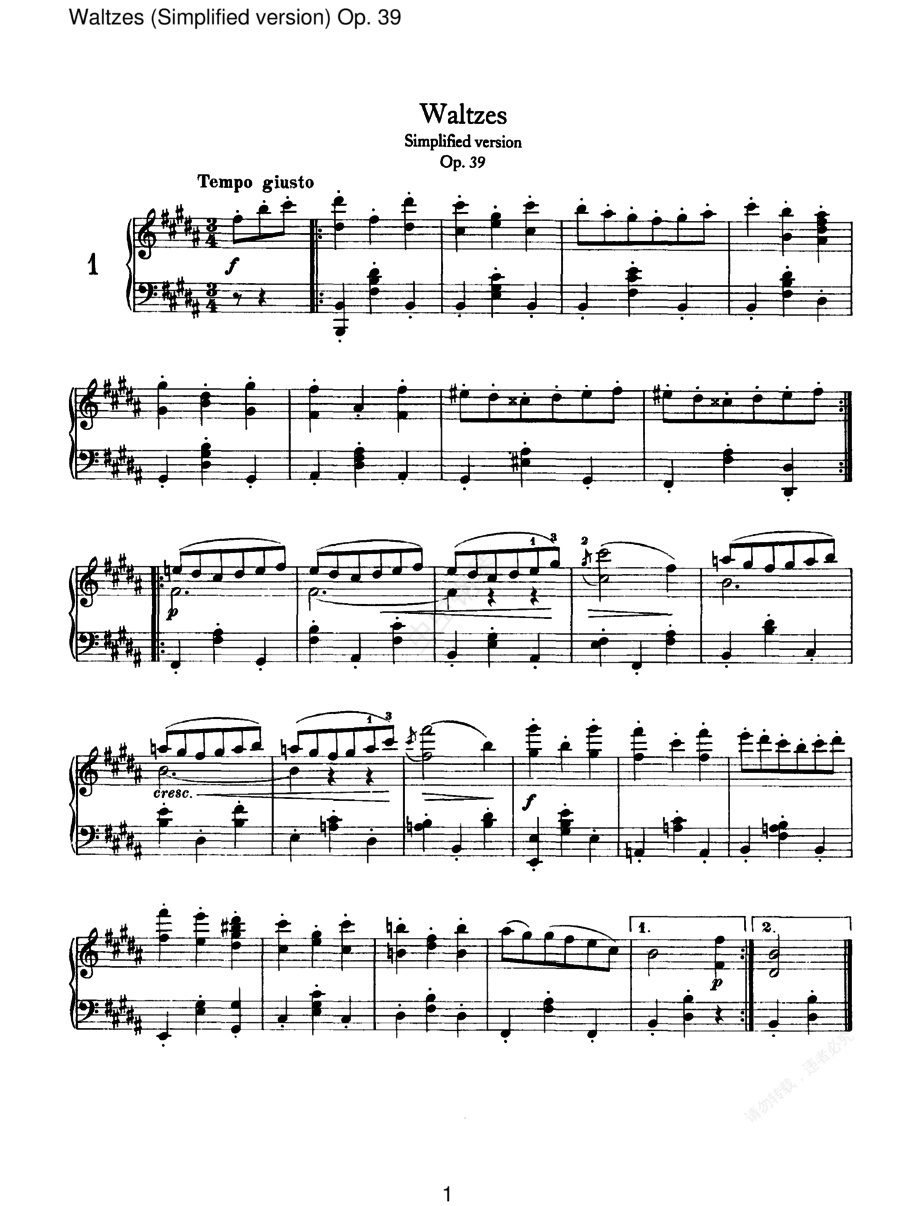 圆舞曲集(16首)Waltzes Op.39(独奏版 四手联弹版 双钢琴版)(Brahms op039c Waltzes (solo)独奏版)