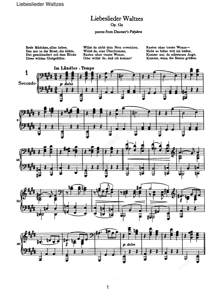 爱之歌圆舞曲 Liebeslieder-Walzer Op.52四手联弹