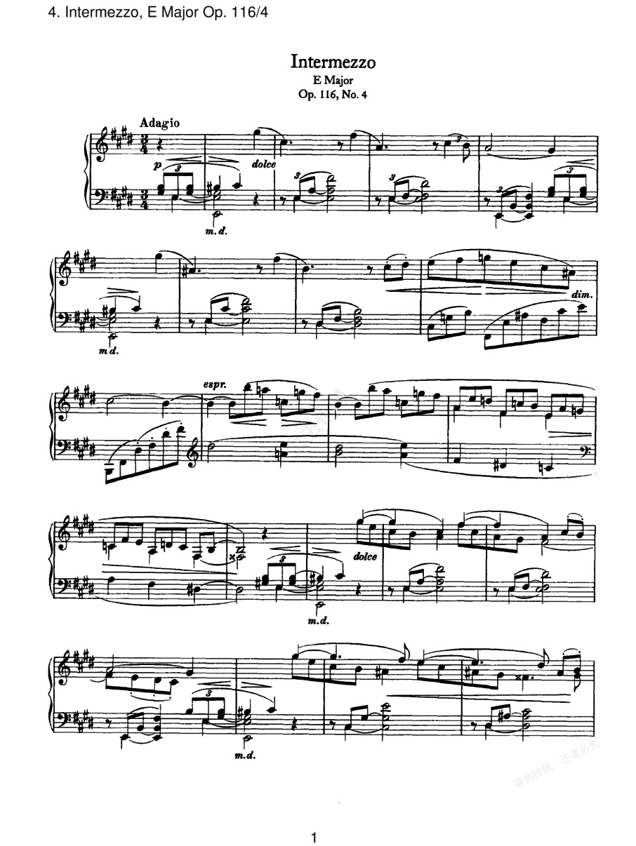 幻想曲集 Fantasien Op.116(Brahms op116n4 Intermezzo in E)