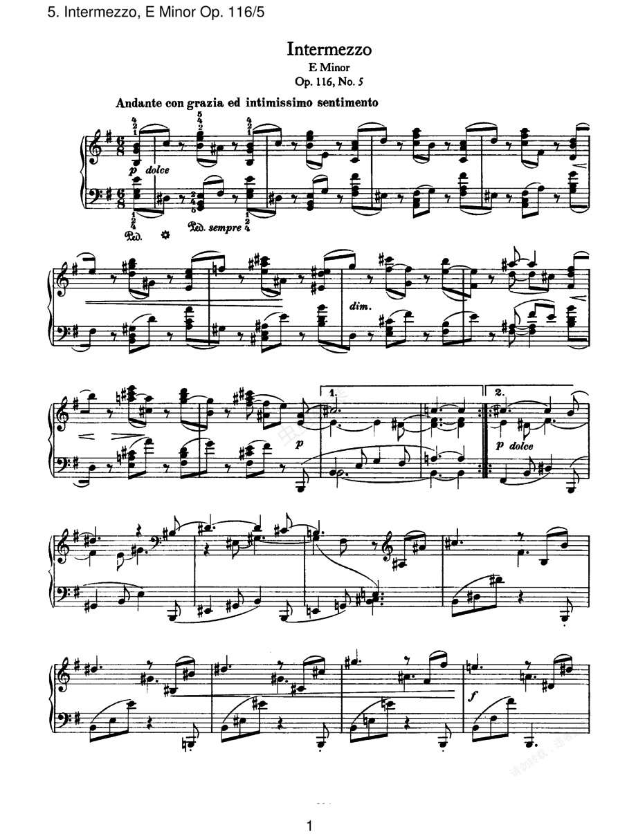 幻想曲集 Fantasien Op.116(Brahms op116n5 Intermezzo in e)