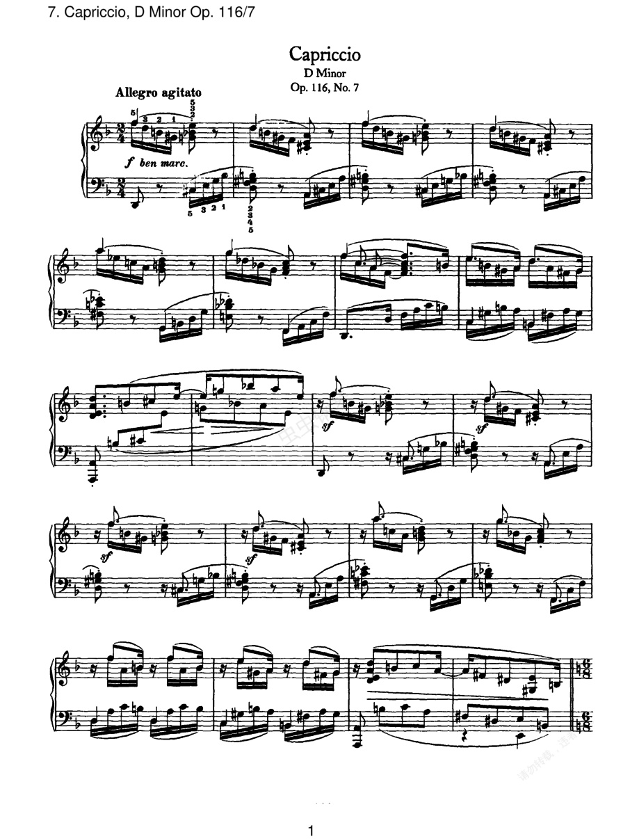 幻想曲集 Fantasien Op.116(Brahms op116n7 Capriccio in d)