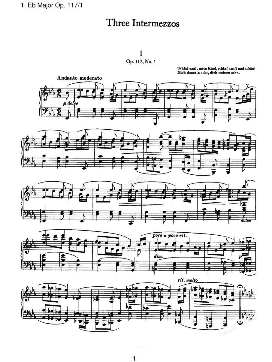 3首间奏曲 3 Intermezzi Op.117(Brahms op117n1 Intermezzo in Eb)