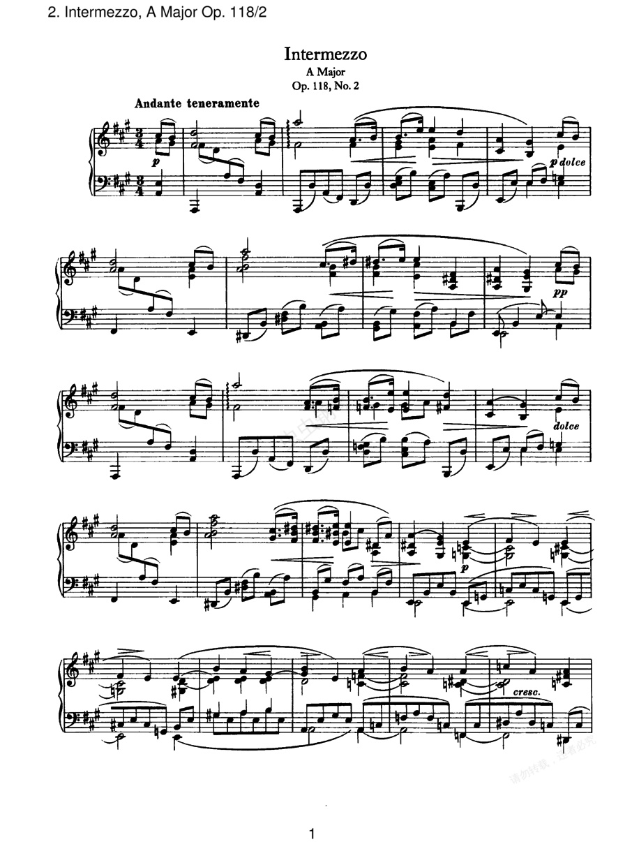 6首钢琴曲 6 Piano Pieces Op.118(Brahms op118n2 Intermezzo in A)