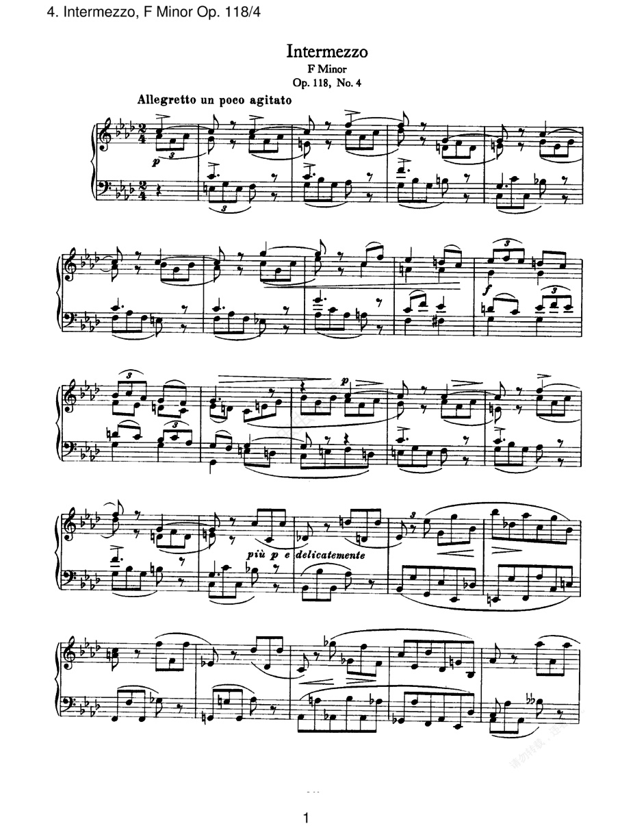 6首钢琴曲 6 Piano Pieces Op.118(Brahms op118n4 Intermezzo in f)