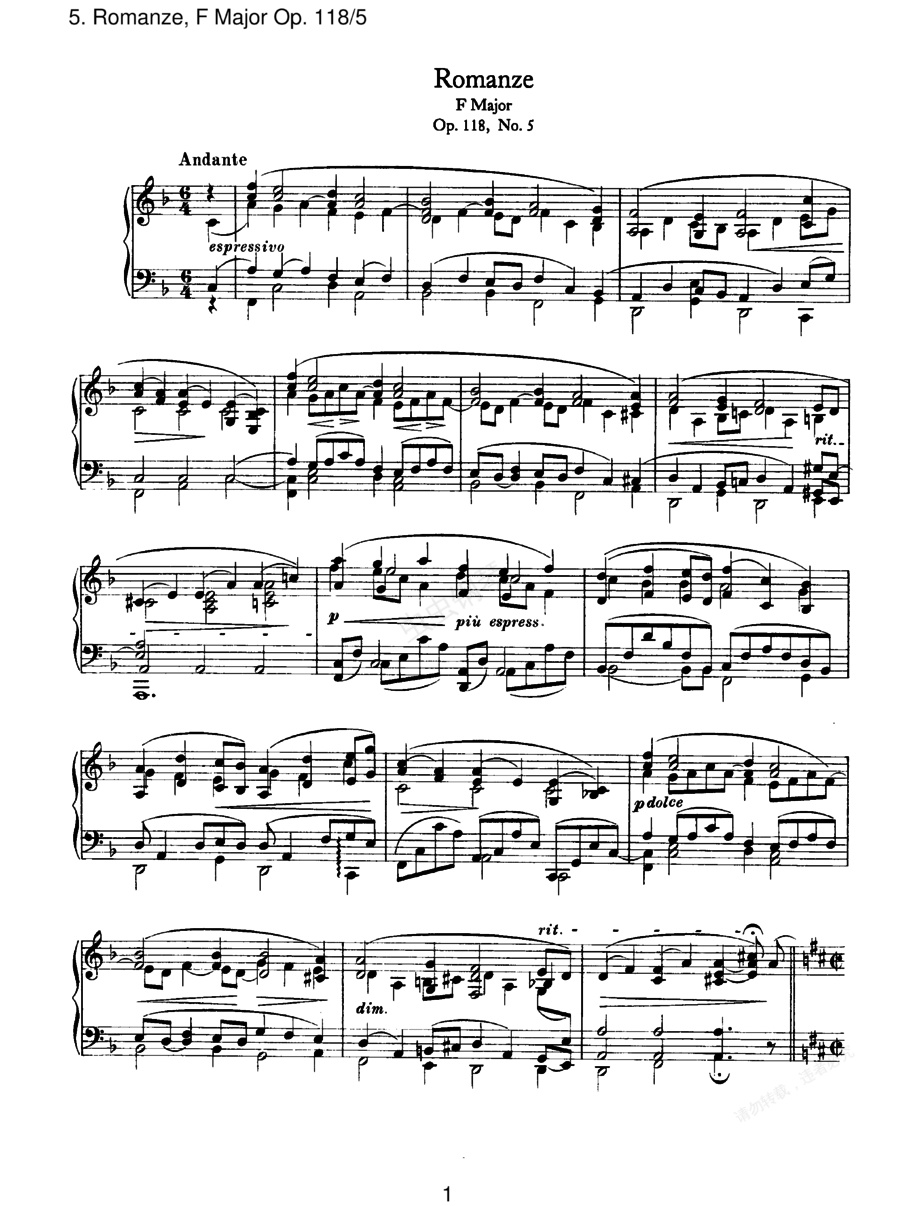 6首钢琴曲 6 Piano Pieces Op.118(Brahms op118n5 Romanze in F)