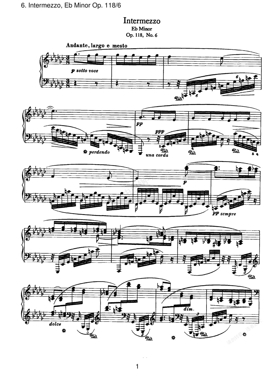 6首钢琴曲 6 Piano Pieces Op.118(Brahms op118n6 Intermezzo in eb)