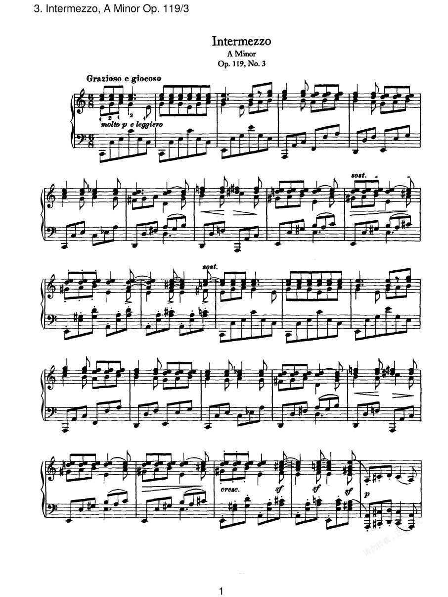 4首钢琴曲 4 Piano Pieces Op.119(Brahms op119n3 Intermezzo in a)