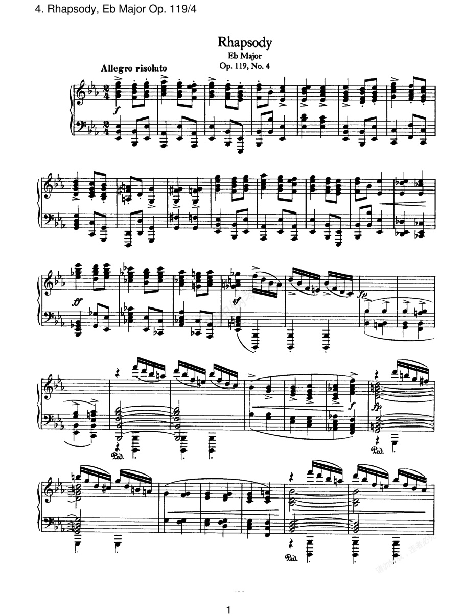 4首钢琴曲 4 Piano Pieces Op.119(Brahms op119n4 Rhapsody in Eb)