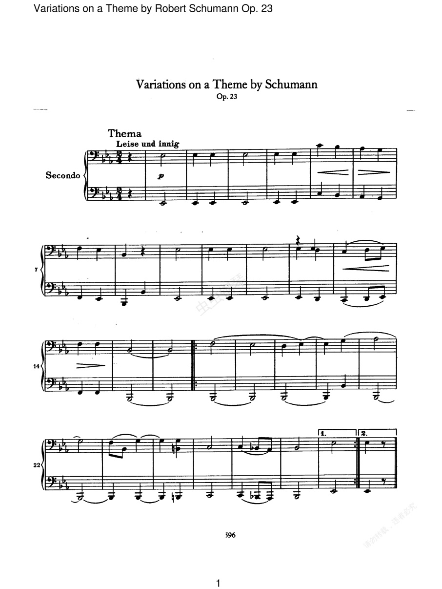 舒曼主题变奏曲 Op.23 - 四手联弹