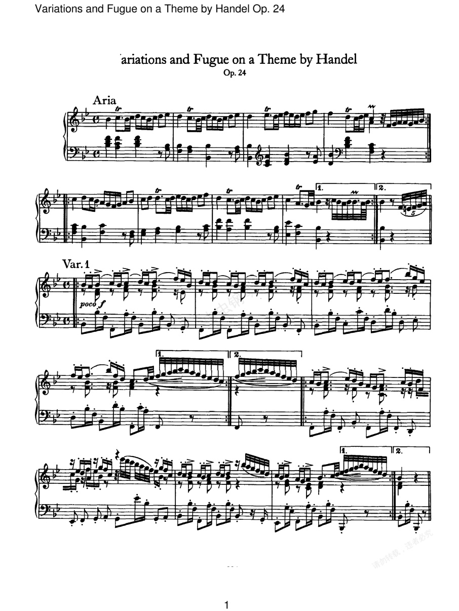 亨德尔主题变奏曲与赋格 Variations and Fugue on a Theme by Handel Op.24