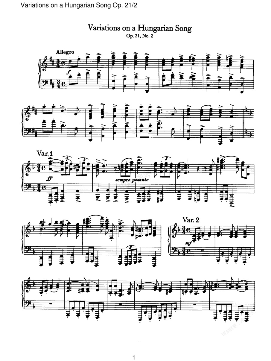 匈牙利主题变奏曲 Variations on a Hungarian Song Op.21-2