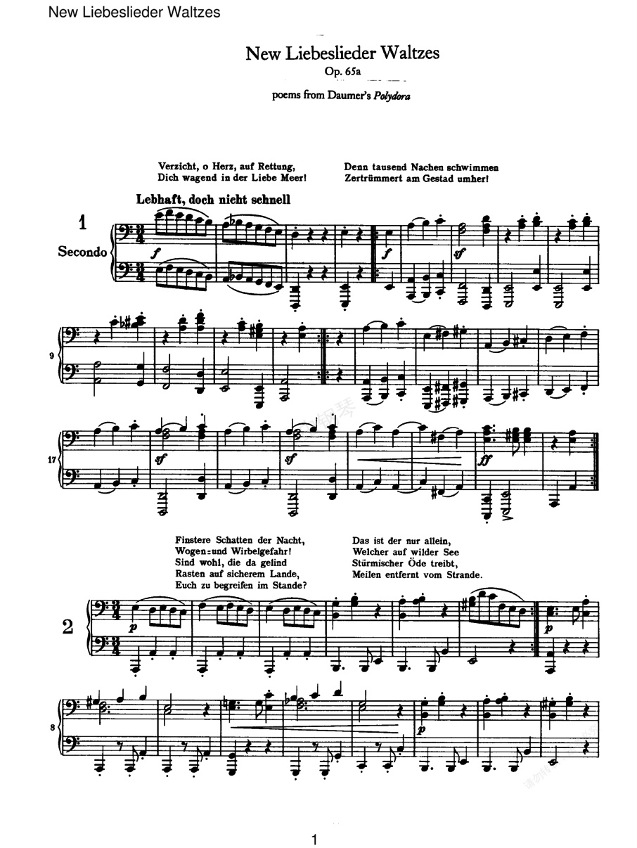 新爱之歌圆舞曲 New Liebeslieder Waltzes Op.65四手联弹版