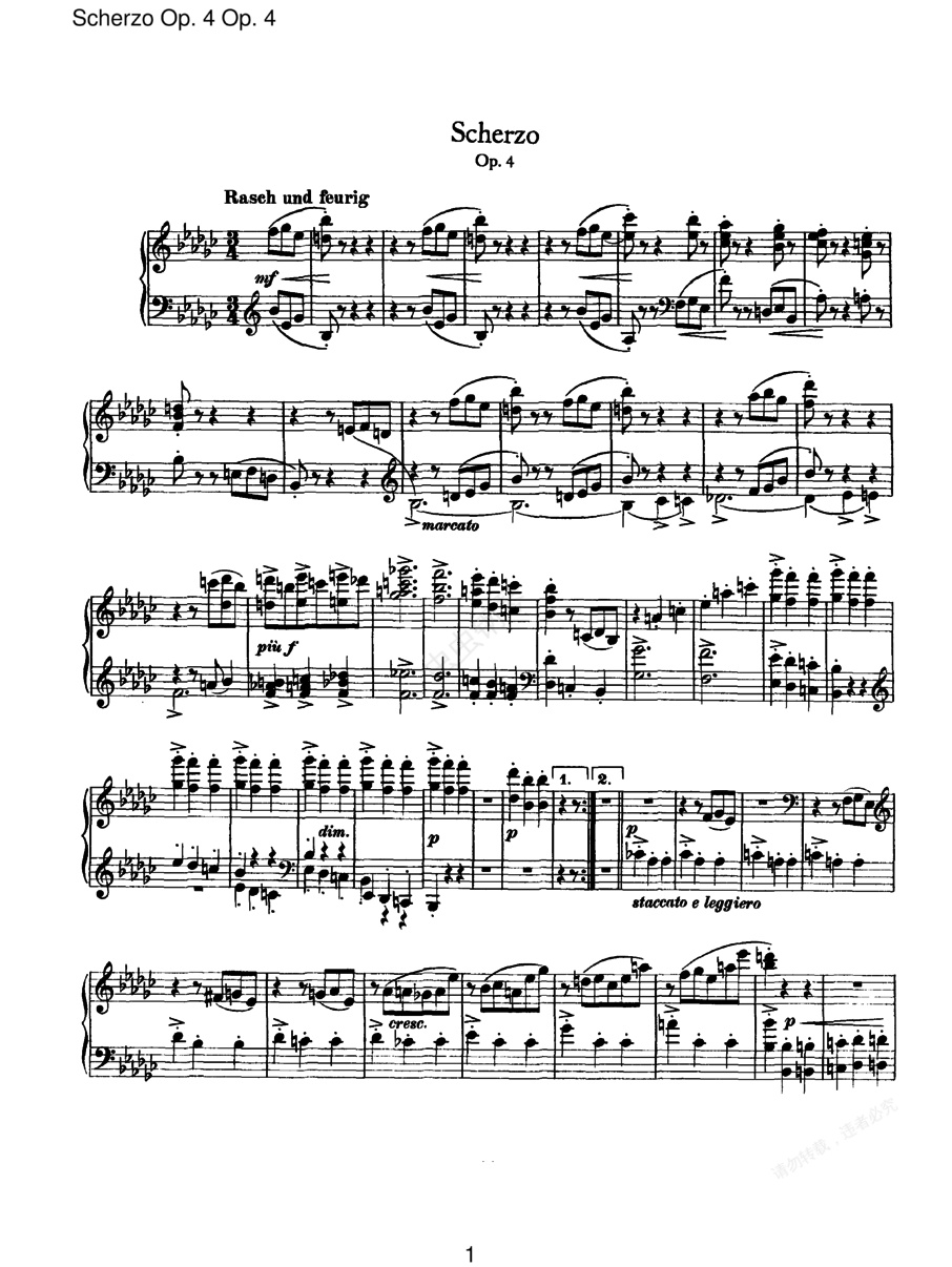 降e小调谐谑曲 Scherzo in e-flat Minor Op.4