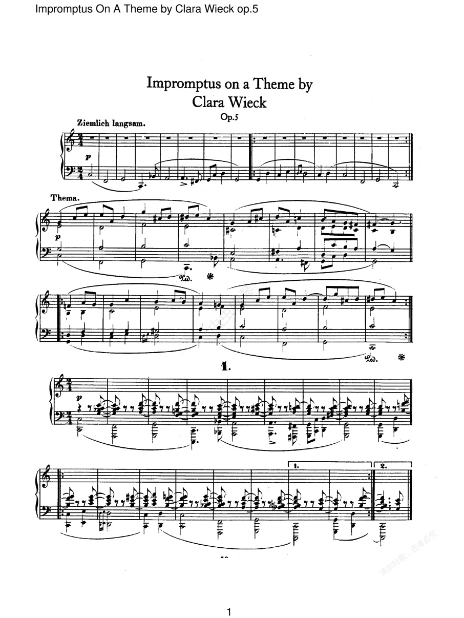 克拉拉·维克主题即兴曲 Impromtus on a Theme by Clara Wieck Op.5