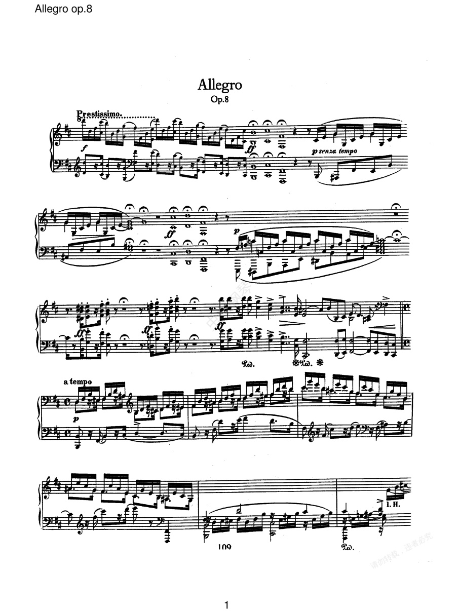 钢琴谱:b小调快板 Allegro Op8