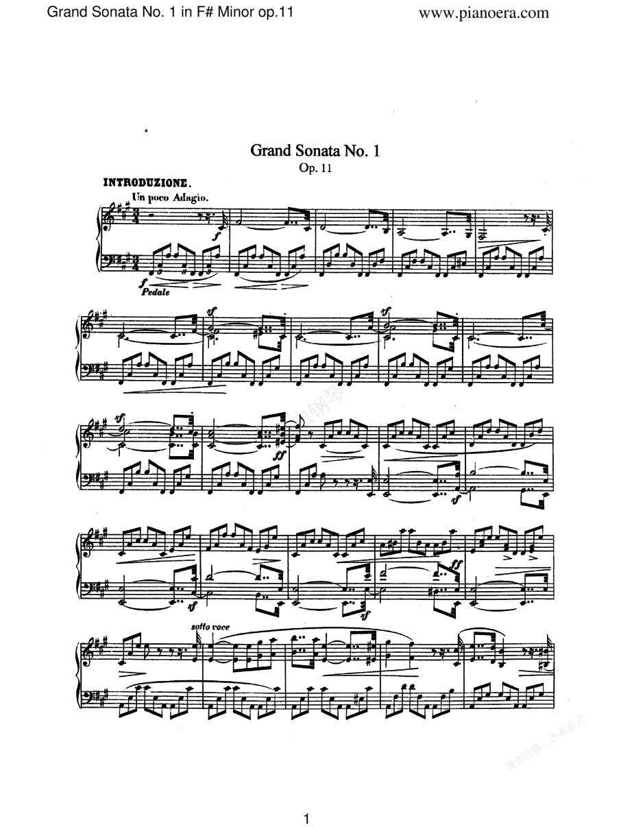 升f小调第一钢琴奏鸣曲 Piano Sonata No.1 In f-Sharp Minor Op.11