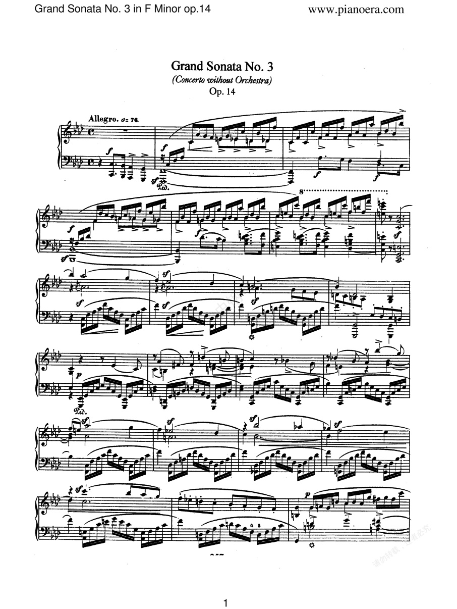 钢琴谱:f小调第三钢琴奏鸣曲 Piano Sonata No.3 in f Minor Op.14(Schumann - Piano Sonata No[1].3 in f Minor Op.14)