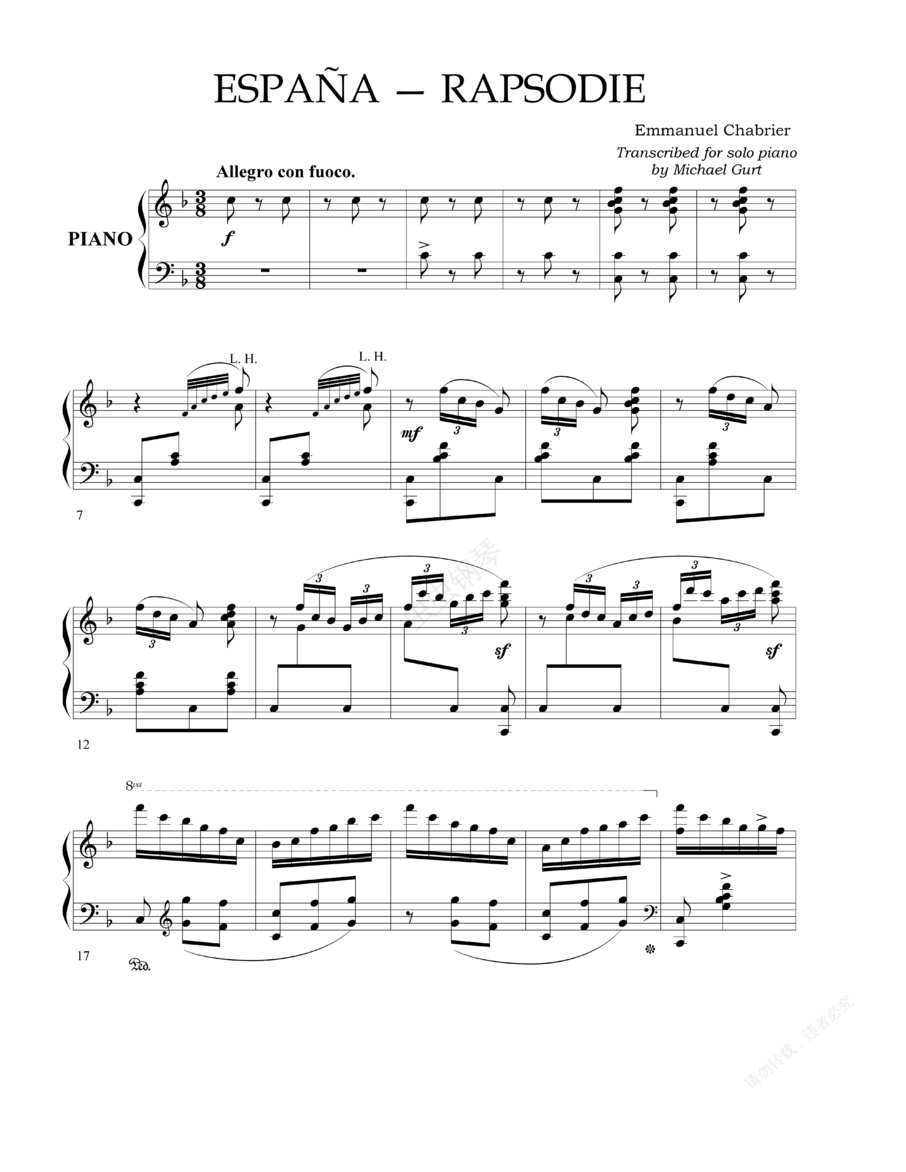 西班牙狂想曲 Espana Rapsodie(Chabrier-Gurt Rhapsodie -- España独奏版)