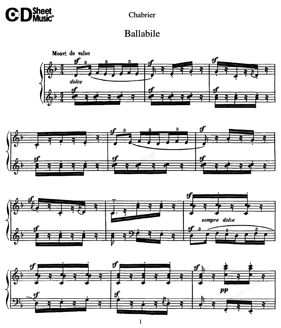 钢琴谱:舞曲 Ballabile - 选自《五首小品》