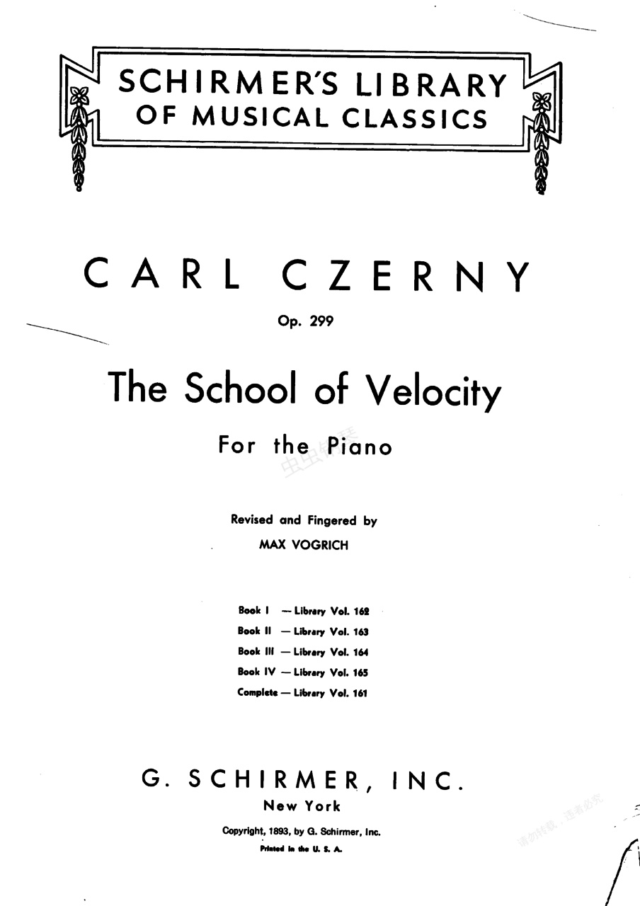 快速练习曲 Of Op.299 车尔尼《快速练习曲》 Of Op.299 是钢琴学习过程中很重要的一门教材,能否练好这本教材,对每个钢琴学习者是至关重要的,其重点技术课题是解决钢琴演奏速度问题。每首练习曲都是一部完整的音乐作品,除了训练速度外,还需要关注力度、分句以及乐感的控制等。 第1首C大调右手流畅的音阶练习; 第2首C大调左手流畅的音阶练习; 第3首C大调右手分解和弦,同型的反复; 第4首C大调右手连续回音的练习; 第5首C大调左右手流畅的音阶; 第6首C大调右手五指不连音的练习,各种音型,同一音型反复; 第7首C大调左手五指不连音的练习,各种音型,同一音型反复; 第8首C大调右手综合的手指练习,流畅的音阶琶音; 第9首C大调左右手五指与音阶,包含五指的快速运动; 第10首F大调左手五指练习, 阿尔贝式低音,分解和弦; 第11首C大调右手三度分解,同音反复; 第12首F大调右手琶音,齐奏平衡的练习; 第13首降B大调左右手的分割奏法,正确的时值; 第14首F大调右手各种回音的练习; 第15首C大调右手半音阶式的五指练习; 第16首G大调右手分解双音,各种音型分解双音; 第17首F大调右手多声部的进行,同型的反复,手指独立性的练习; 第18首G大调左手同型反复的五指练习,包含分解三度; 第19首F大调右手琶音,同型的反复,手指的敏捷练习; 第20首C大调左右手分解扩张练习; 第21首C大调右手五指的力度练习,左手有旋律; 第22首G大调左右手同音反复的练习; 第23首A大调右手各种分解双音; 第24首D大调右手音阶与五指练习,双音与三度; 第25首降E大调左右手音阶齐奏,平衡与力度练习; 第26首A大调右手连音、乐句与速度、六对不确定数目音符的组合训练; 第27首g小调左右手双音震音练习; 第28首C大调右手分解八度,同型的反复,四、五指的独立与强化,指间的扩大; 第29首E大调左右手平行音阶,跳跃断奏,三度双音; 第30首C大调左手包含八度音程的琶音与右手的分割奏法; 第31首降B大调左右手半音阶,五指的各种运动; 第32首C大调左右手交叉的琶音; 第33首E大调左右手音阶与五指练习,包含平行音阶; 第34首a小调左手综合的手指练习,右手和弦节奏,指尖的扩大; 第35首A大调右手分解八度,左手的跳跃; 第36首C大调左右手反行琶音,反行半音阶的快速音群,手指的综合练习; 第37首降A大调右手多声部的进行,高音域上的练习; 第38首G大调右手双震音,有保持音的颤音,左右手的分割奏法; 第39首降D大调右手琶音,包含双手交叉; 第40首F大调左右手手指的综合练习,包含有保持音的颤音。