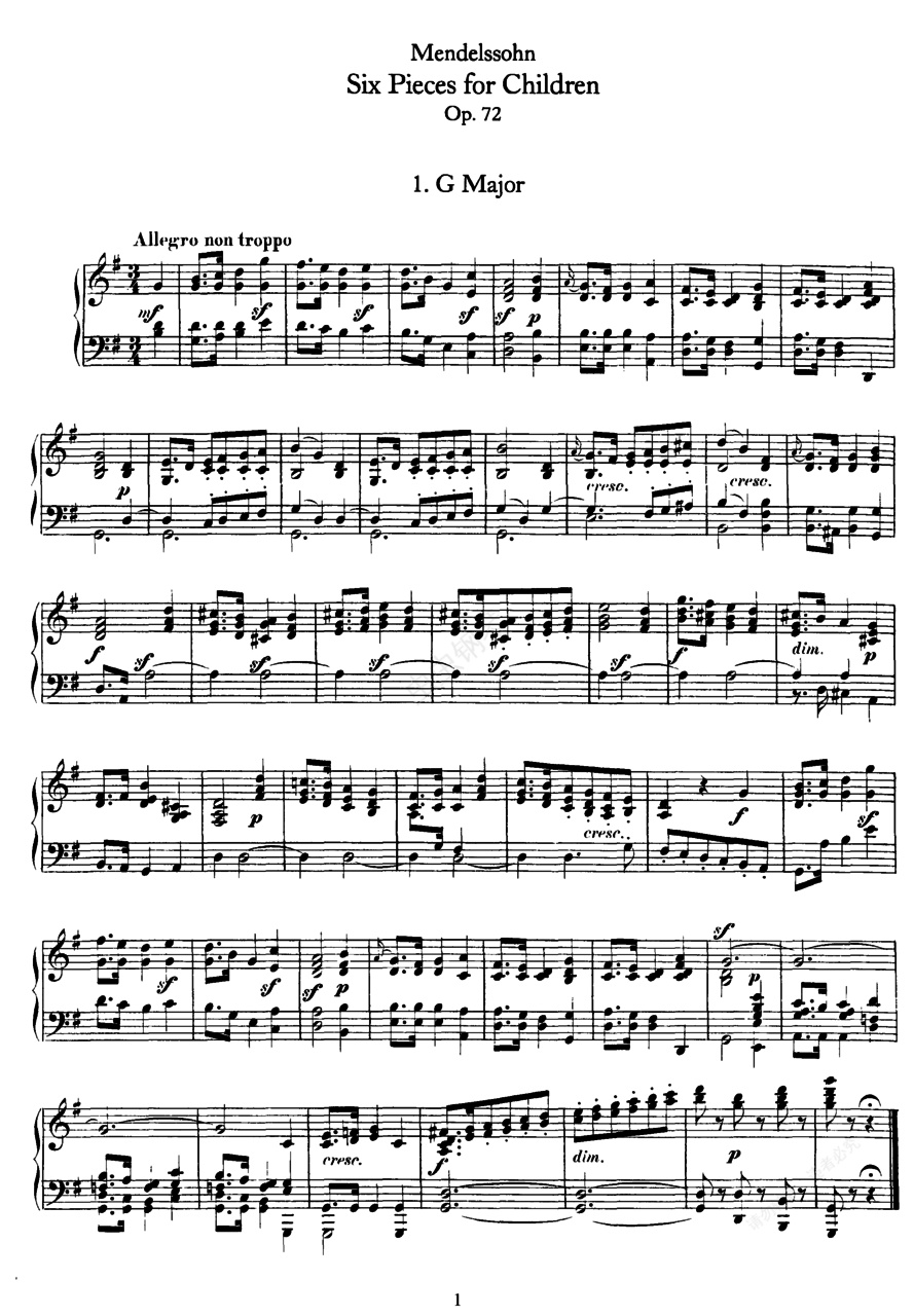 钢琴谱:6首儿童钢琴曲 6 Pieces for Children Op.72(Mendelssohn op072 6 Pieces for Children)