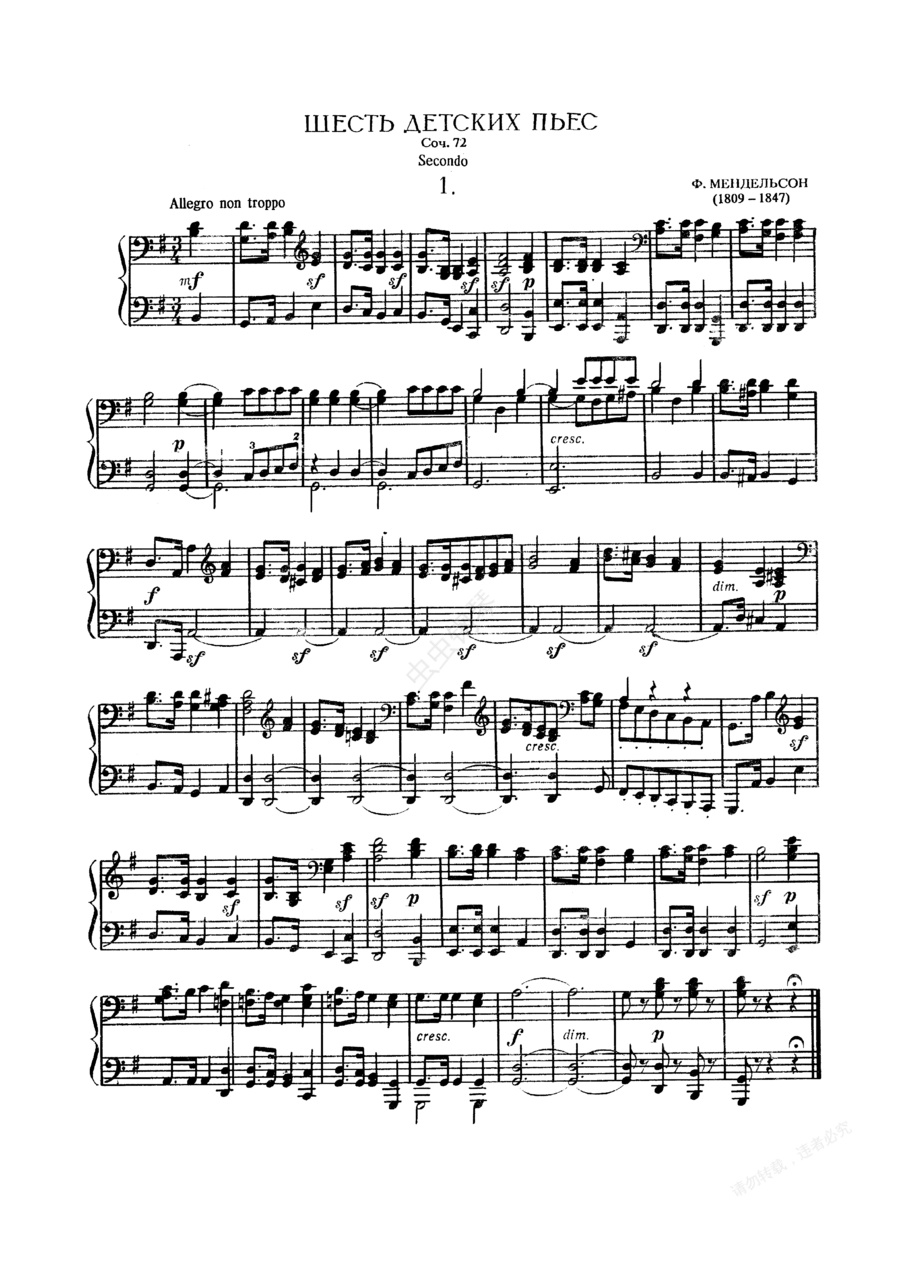 钢琴谱:6首儿童钢琴曲 6 Pieces for Children Op.72(Mendelssohn op072 6 Pieces for Children (duet)四手联弹版)