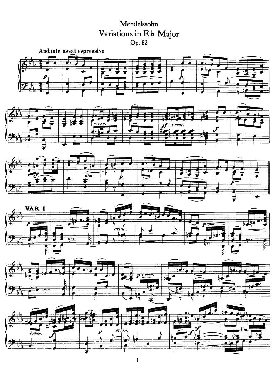 钢琴谱:降E大调变奏曲 Variations in E-flat Major Op.82
