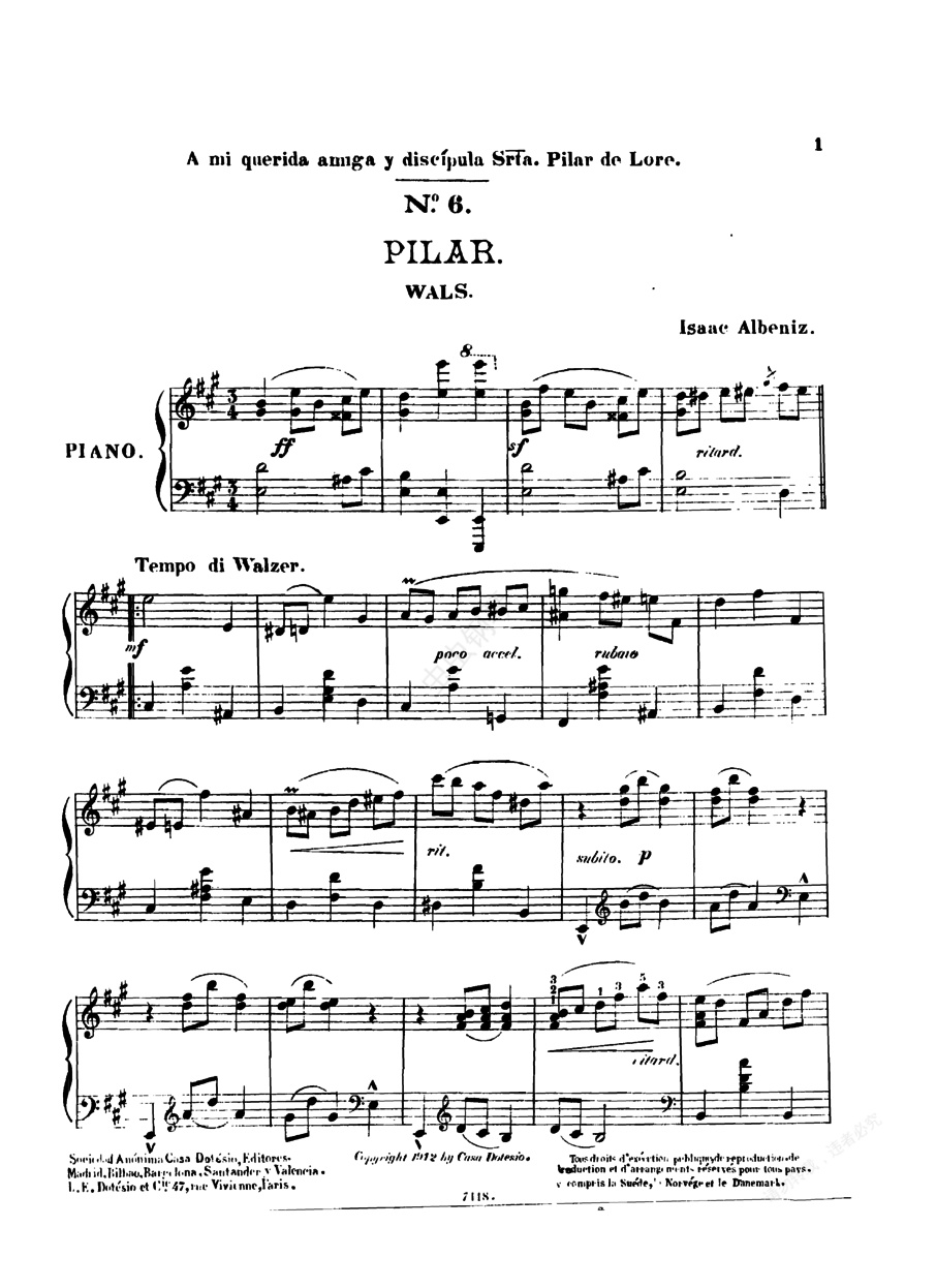 钢琴谱:12首个性小品 Douze Pieces Caracteristiques Op.92(Albeniz.-.op.92-6.-.Pilars-Vals)