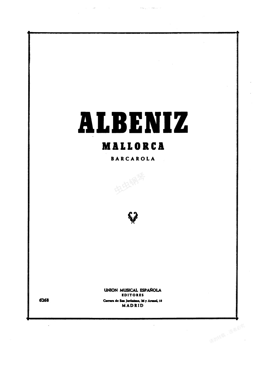 马略卡船歌 () Op.202 《马略卡船歌》 "" Op.202 ,作于1891年,并由作曲家于同年在英国首演。马略卡是离巴塞罗那南部仅一日航程的地中海半热带岛屿,一直以来都是欧洲的度假圣地。阿尔贝尼兹用船歌的形式创作了这首名为“马略卡”的钢琴曲,再现了该岛慵懒娇媚的风情。作品为升f小调,6/8拍,小行板,其迷人和伤感的主题旋律伴随着摇曳的船歌节奏,让人联想起晚年的肖邦。中段转入稍快的升F大调,宛如浪花不断地拍打着岛上的海岸,情绪一度明朗,但很快又回到阴暗的升f小调上。该曲被改编成吉他独奏曲后更广为人知,甚至比钢琴原作流传更广,成为阿尔贝尼兹的代表作之一。