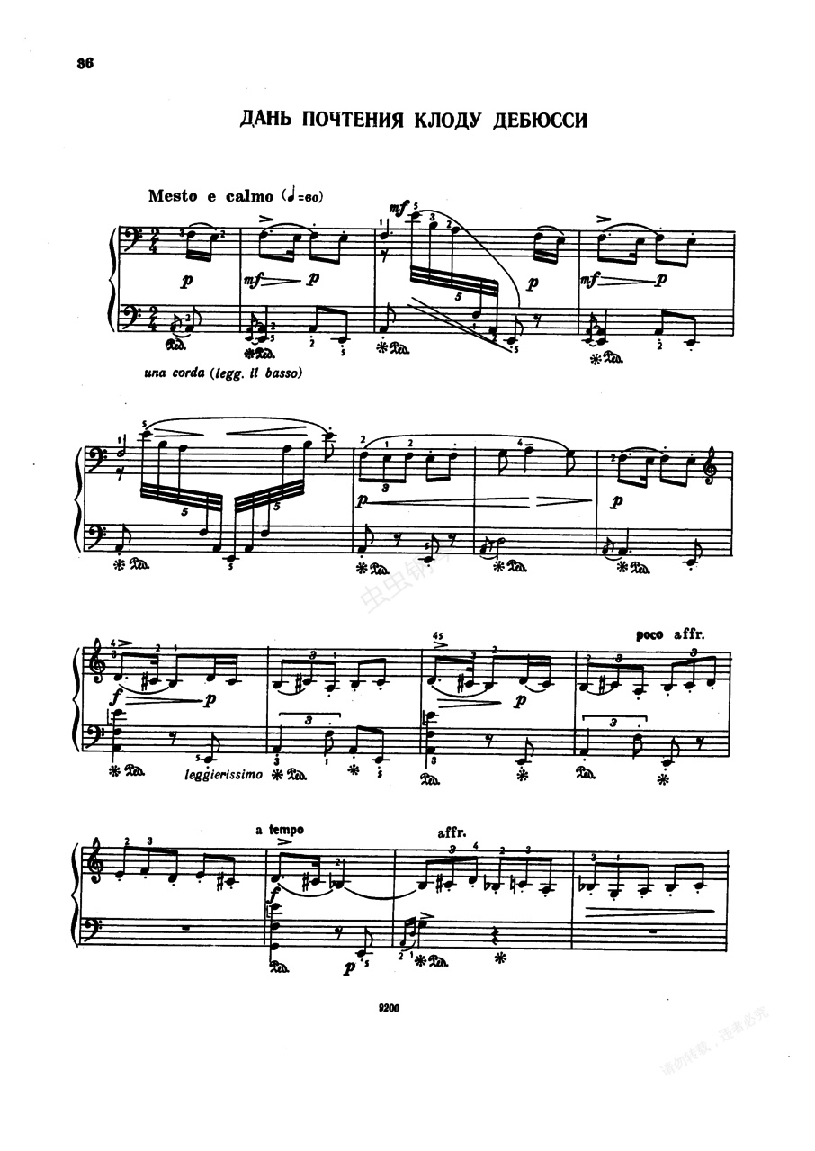 德彪西赞 a - 吉他独奏曲 《德彪西赞》 a 是法雅唯一的一首为吉他独奏而作的作品。作于1920年,随后由法雅本人改编成管弦乐,重新定名《德彪西赞》,收入他的组曲《赞歌》中。 1920年,法国音乐期刊《音乐评论》约请德彪西生前的挚友撰稿,其中也包括法雅。法雅在较短的时间内完成了这首吉他小品。在此之前,法雅也曾经答应为廖贝特创作一首吉他小品,因此本曲实际上也是应廖贝特的要求而作成的吉他作品。乐谱最初发表在《音乐评论》1920年12月1日号刊上。1921年1月24日在巴黎独立音乐协会演奏会上首演,不过不是用吉他,而是用竖琴式鲁特琴上演。 本曲情绪哀伤静寂。一开始就呈示的两小节2/4拍的主要音调集中提示了乐曲的节奏形态和调性。采用三部曲式结构,结尾处借用了德彪西钢琴作品《格拉那达之夜》(选自《版画集》)的音调。全曲简洁雅致,堪称为近现代吉他作品的上乘之作。改编成钢琴独奏后仍不失其曲趣。