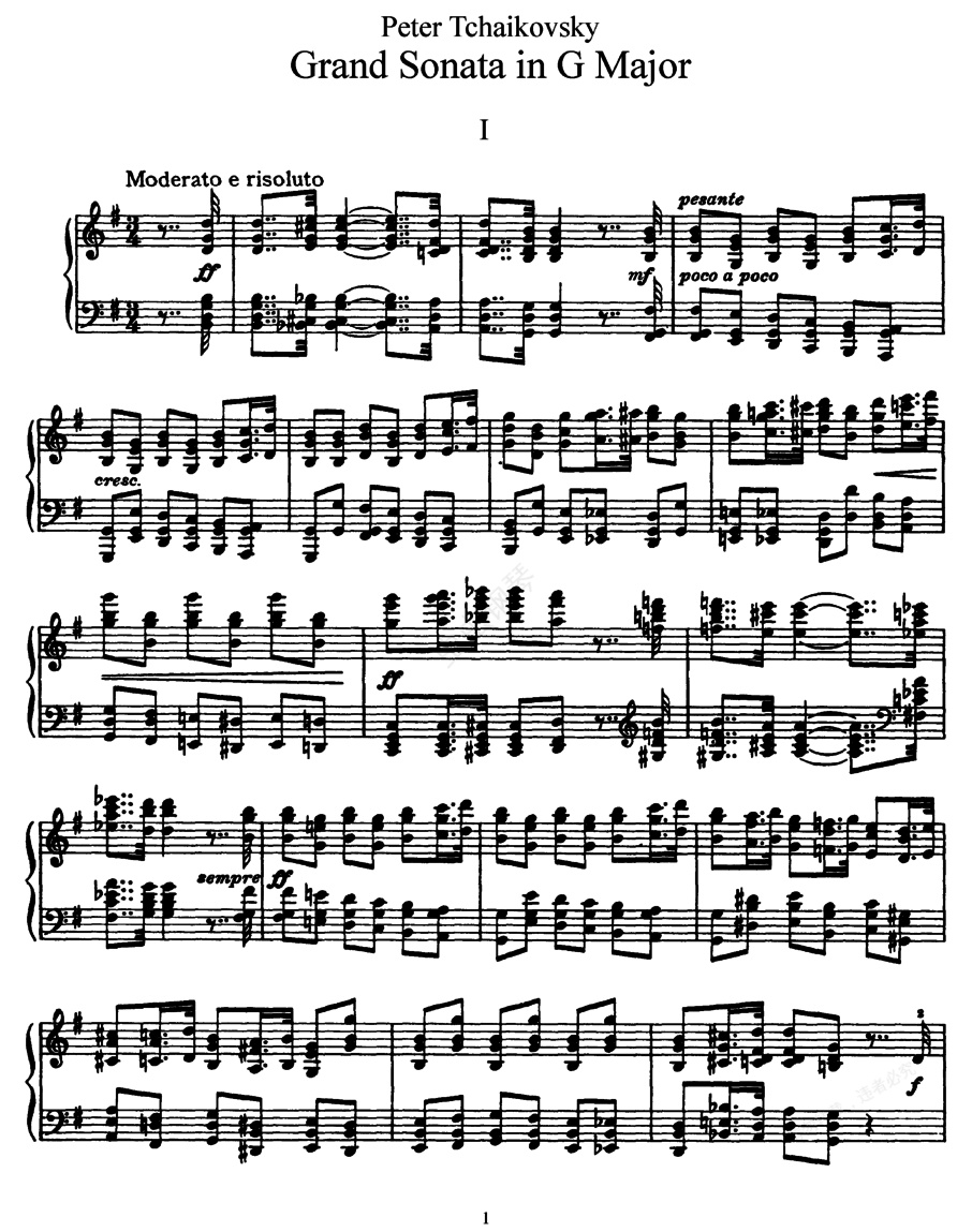 钢琴谱:G大调华丽钢琴奏鸣曲 Grande Sonata in G Major Op.37(Tchaikovsky op37 Grand Sonata in G版本一)