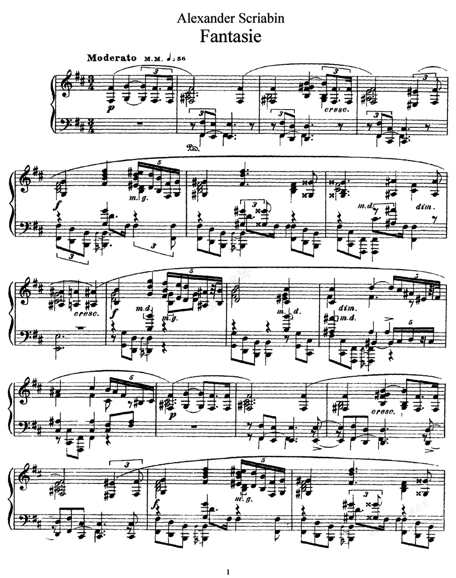 b小调幻想曲 Fantaisie in b Minor Op.28(Scriabin op28 (1900) Fantasie 版本一)