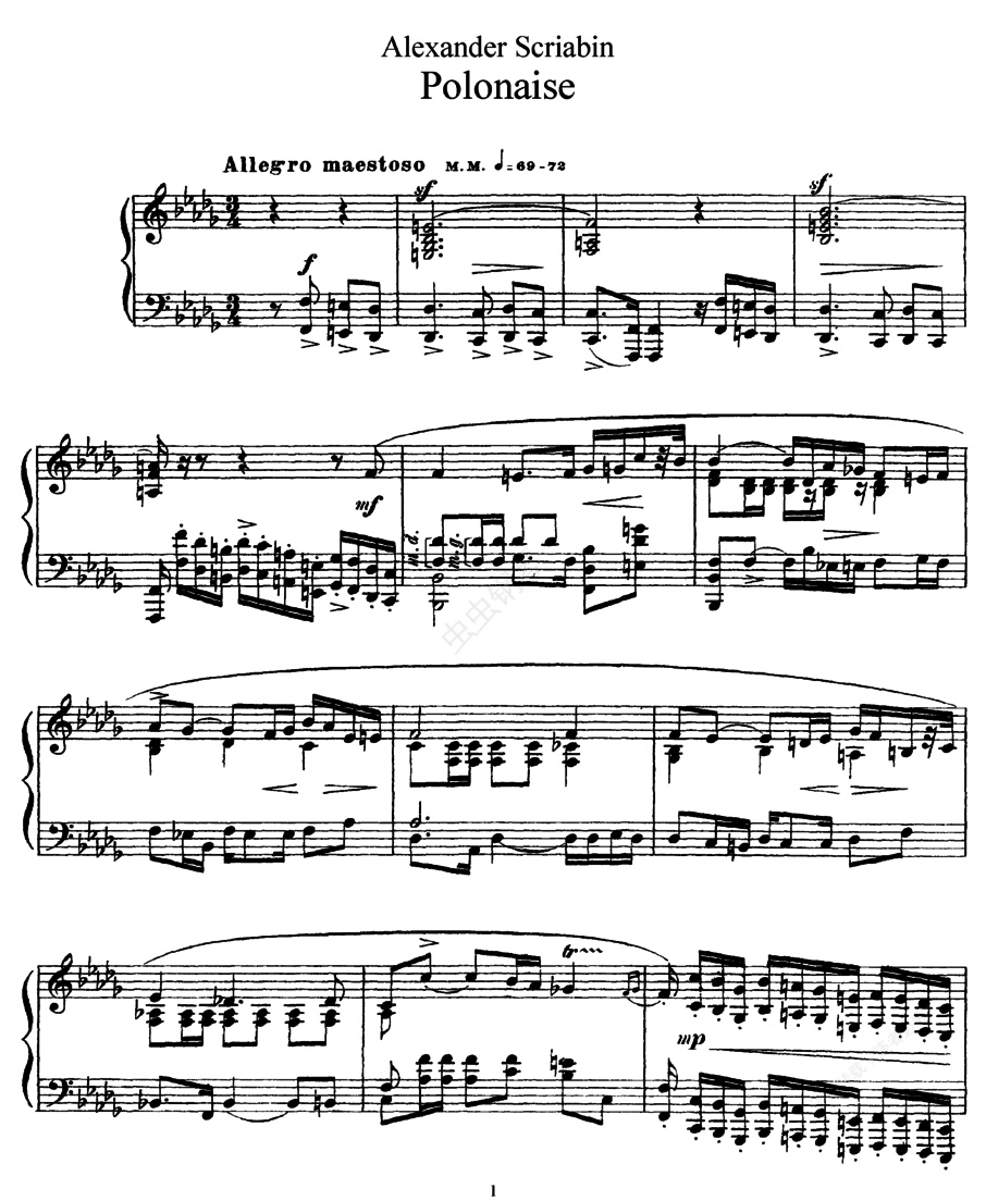 钢琴谱:降b小调波兰舞曲 Polonaise in b-flat Minor Op.21