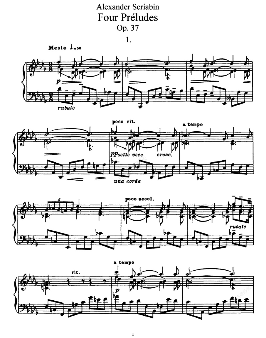 钢琴谱:4首前奏曲 4 Preludes Op.37