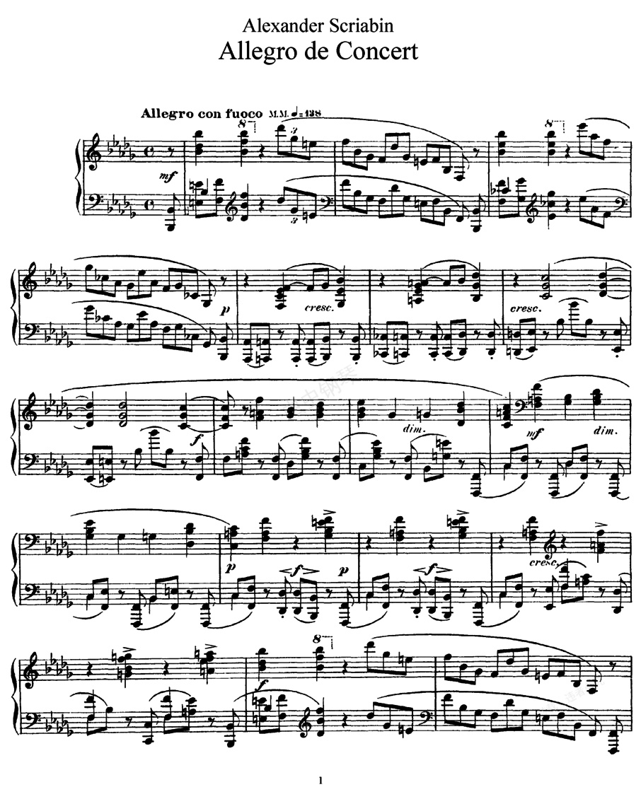 钢琴谱:音乐会快板 Allegro de Concert Op.18