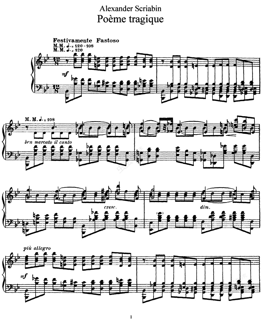 钢琴谱:悲剧之诗 Poeme Tragique Op.34