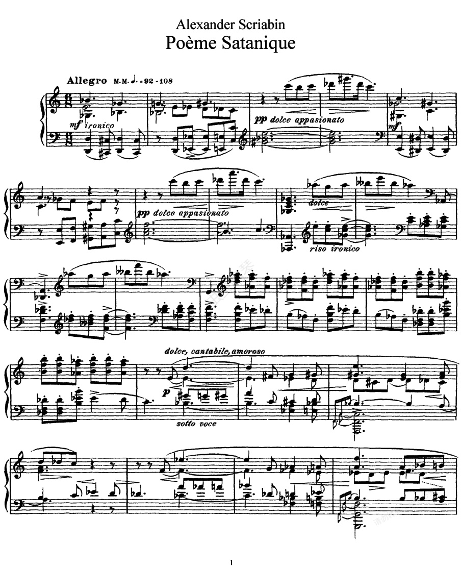 钢琴谱:撒旦之诗 Poème Satanique Op.36