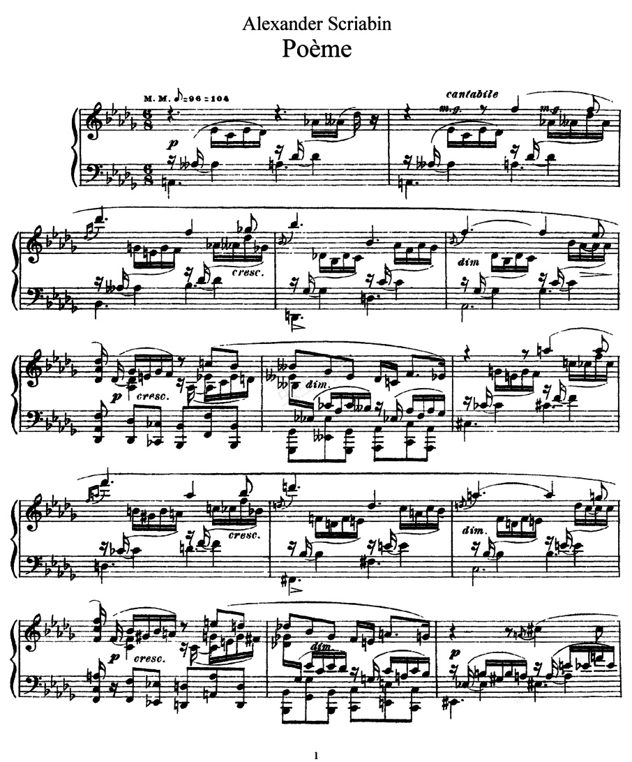 钢琴谱:降D大调音诗 Poem in D-flat Major Op.41