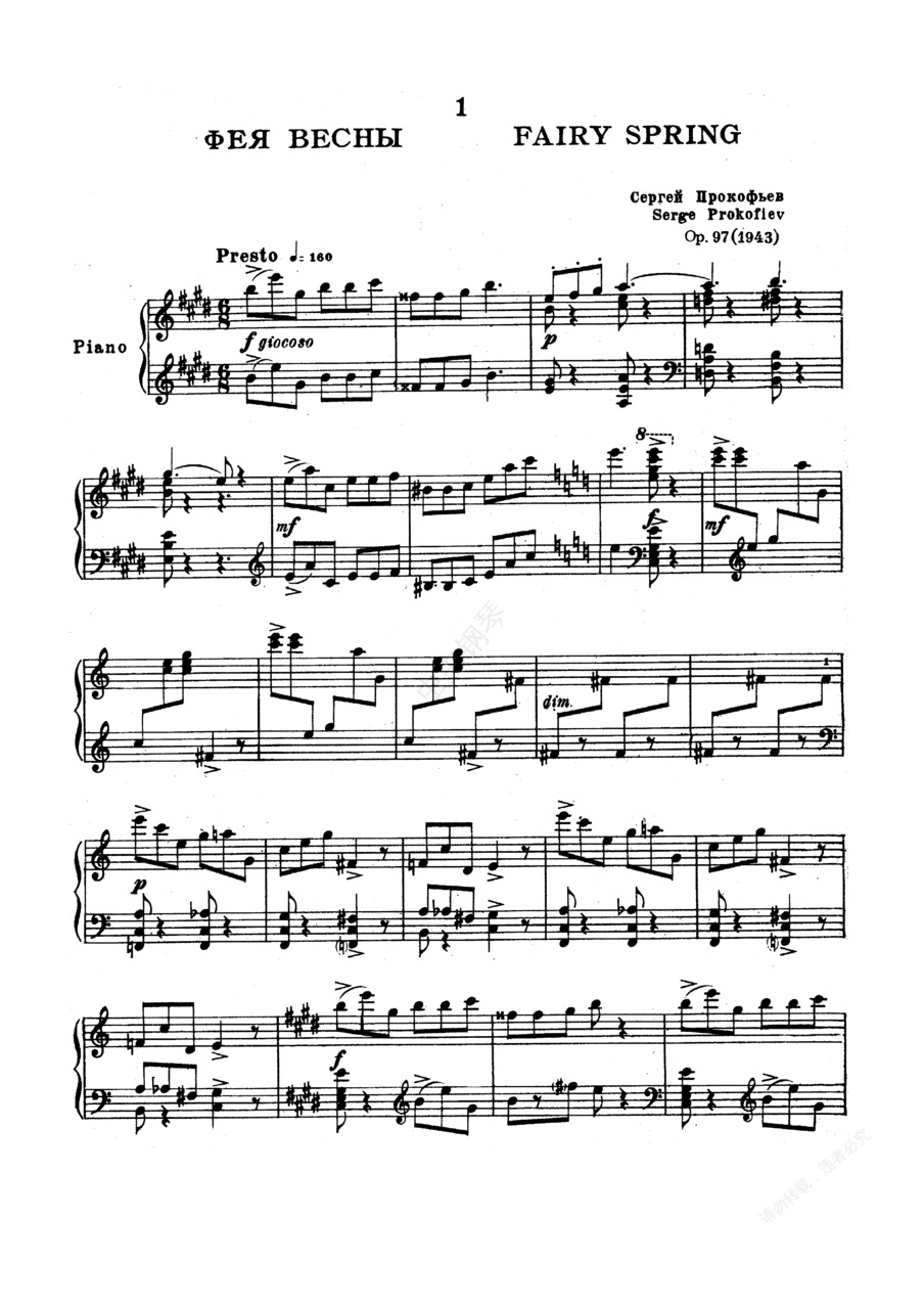10首小品 - 选自舞剧《灰姑娘》Ten from Op.97《灰姑娘第二组曲》Ten from Op.97 ,选自舞剧《灰姑娘》,又译“辛迪蕾拉”、“辛德蕾拉”、“辛蒂蕾拉”,作于1943年,于1944年出版,由十首小品组成。1. 春精灵 Fairy ,E大调,6/8拍,急板。2. 夏精灵 Fairy ,C大调,12/8拍,梦幻的小行板。3. 秋精灵 Fairy ,c小调,2/4拍,中庸的快板。4. 冬精灵 Fairy ,降A大调,4/4拍,近似小快板的中板。5. 蚱蜢和蜻蜓 and Flies ,C大调,2/4拍,有力而活泼的。6. 东方舞曲 ,F大调,3/4拍,温柔的行板-生动的。7. 帕斯比叶舞曲 ,G大调,3/8拍,小快板。8. 随想曲 ,又称“库比什卡变奏曲”'s(库比什卡是灰姑娘的二姐),D大调,3/4拍,随想风格小快板。9. 布列舞曲 Bourrée ,G大调,2/2拍,粗犷的快板。10. 柔板 ,又称“双人舞”Pas de Deux ,C大调,9/8拍,如歌的柔板。