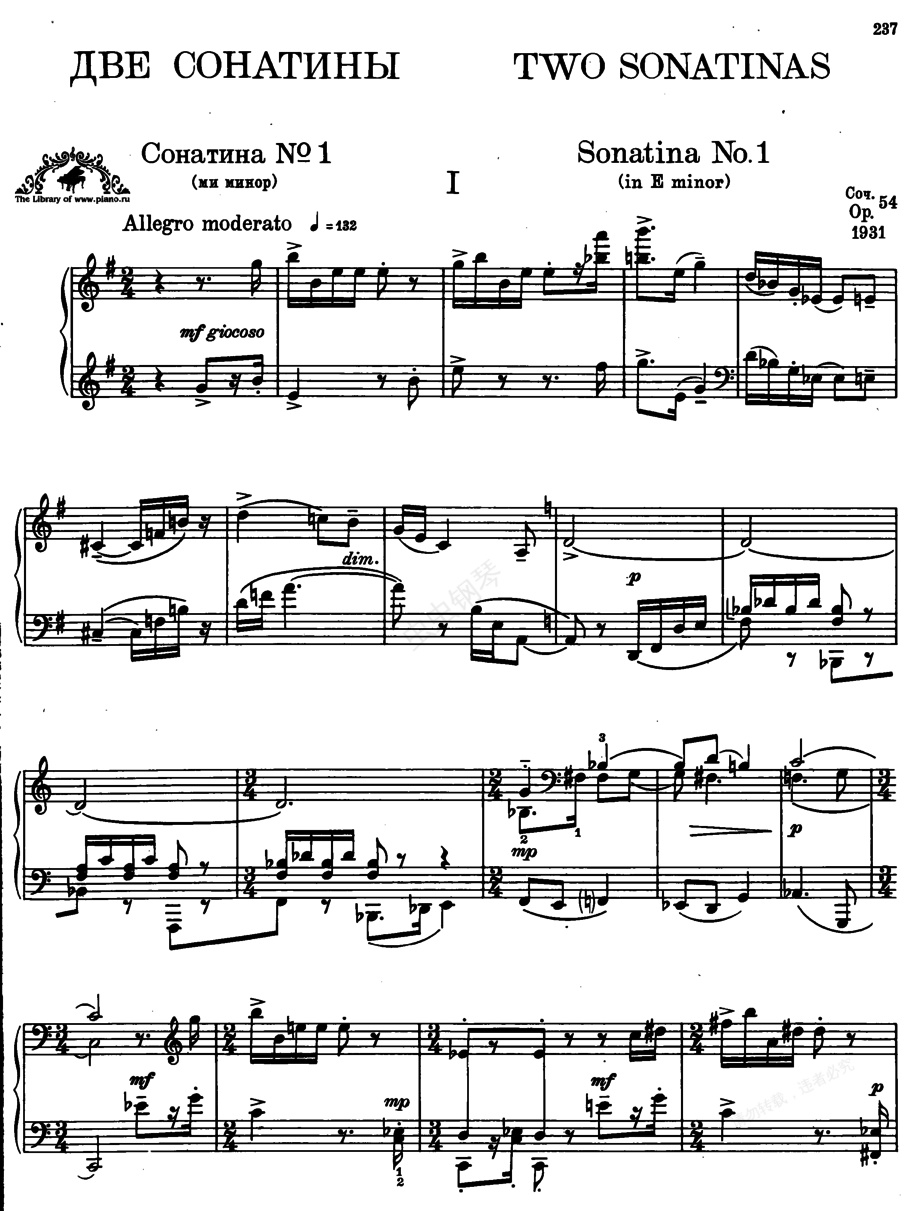 2首钢琴小奏鸣曲 Two Sonatinas for Piano Op.54(Prokofiev op054n1 Sonatina in e)