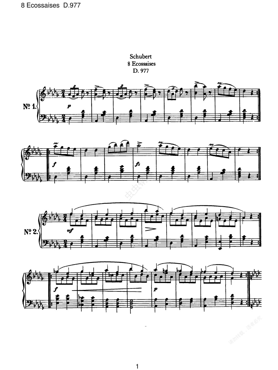 钢琴谱:8首埃科塞斯舞曲 Eight Ecossaises D.977